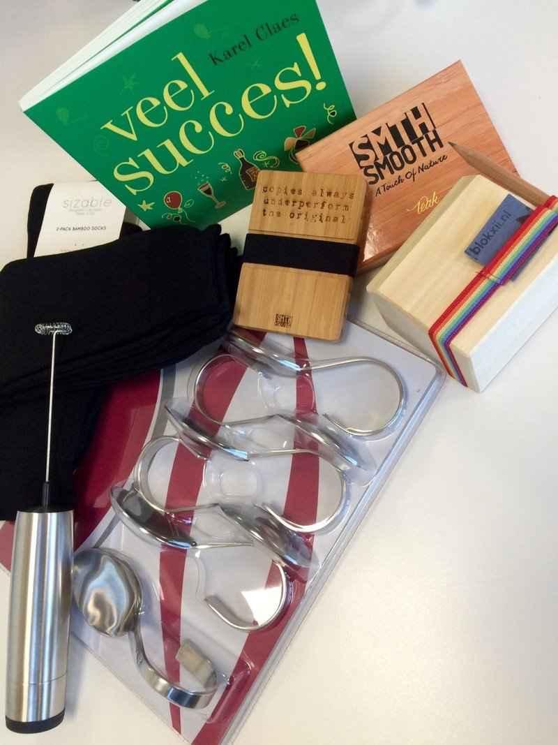 Met jouw stem maak je kans op een fantastisch prijzenpakket (t.w.v. 125) vol leuke startup producten: BlokXII bloknoot, SMTH Smooth bamboo Pallet, Sizable bamboe sokken, BergHOFF melkopschuimer & aperitieflepels en het boek Veel Success' van Karel Claes.