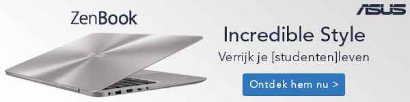 De ZenBook is de ideale laptop om mee te nemen op de trein of naar de les. Hij is dun genoeg en vederlicht. De accu gaat lang genoeg mee zodat je kan werken of films kan kijken op de trein en hem meerdere lessen na elkaar kan gebruiken zonder je oplader te hoeven meesleuren. En hij ziet er nog eens stijlvol uit ook.
