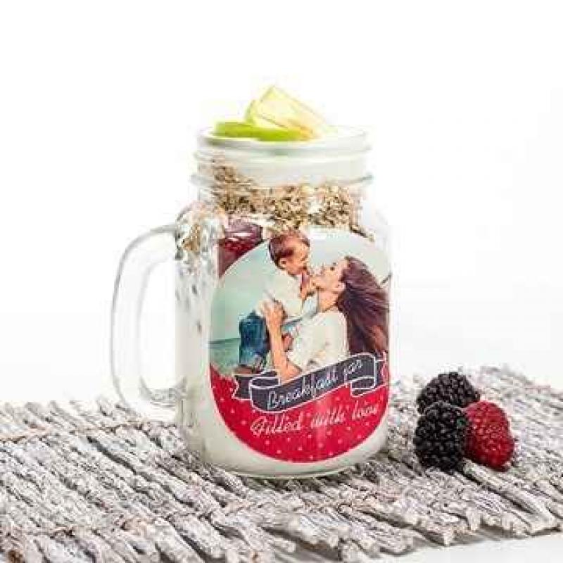 Vul een aantal kleine papieren of plastieken zakjes met koekjes en kleef er een gepersonaliseerde sticker met een grappige boodschap op. Als mama van een gezond ontbijt houdt, ga dan nog een stapje verder en vul een voorraadpot met laagjes yoghurt, besjes, havervlokken, amandelnoten, appeltjes ... Maak deze wel 's morgens pas klaar, zodat de havervlokken vers en krokant blijven.