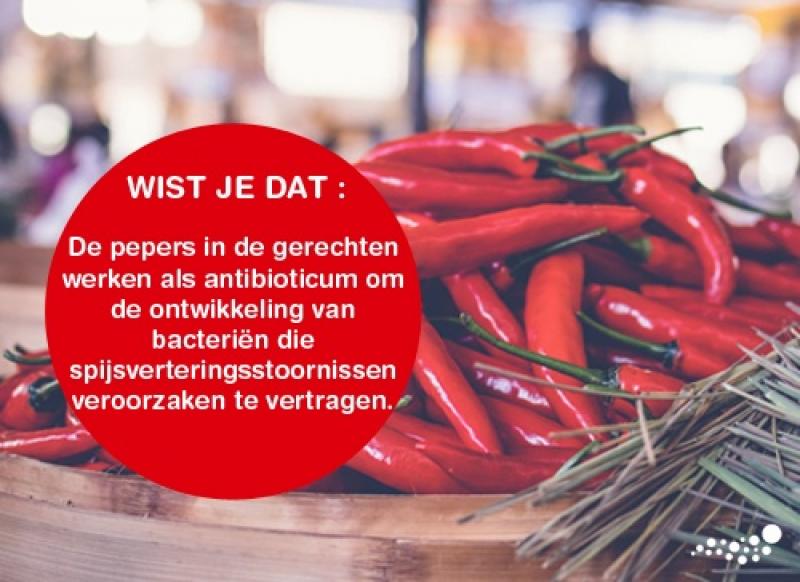 We merken inderdaad dat het eten in deze landen over het algemeen pittiger gekruid wordt, met de bedoeling een mogelijke rotte smaak van het voedsel te verbergen. Tegelijkertijd doen die kruiden ook dienst als antibiotica om de groei van bacteriën en schimmels die voedsel bederven te vertragen.