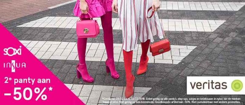 *Geldig t.e.m. 01/03/2018. Enkel geldig op alle panty's, stay-ups, sokjes en kniekousen in nylon van de merken Insua en sOxi. Niet geldig op kids beenmode. Goedkoopste artikel aan -50%. Niet cumuleerbaar met andere promoties.