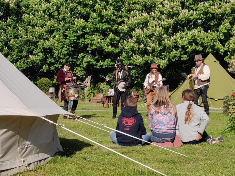 Bij het krieken van de daaropvolgende dag trakteren de talloze vogels rond het kampterrein ons op een live fluitconcert – mijlpaal: ons eerste liveconcert sinds de pandemie is een feit! Alle gekheid op een stokje: enkele uren later krijgen we daadwerkelijk ons eerste live optreden sinds corona voorgeschoteld, want het avondmaal wordt opgevrolijkt door een charmant bluegrassbandje dat out of the blue ten tonele verschijnt op het kampeerterrein. Pluspunten.