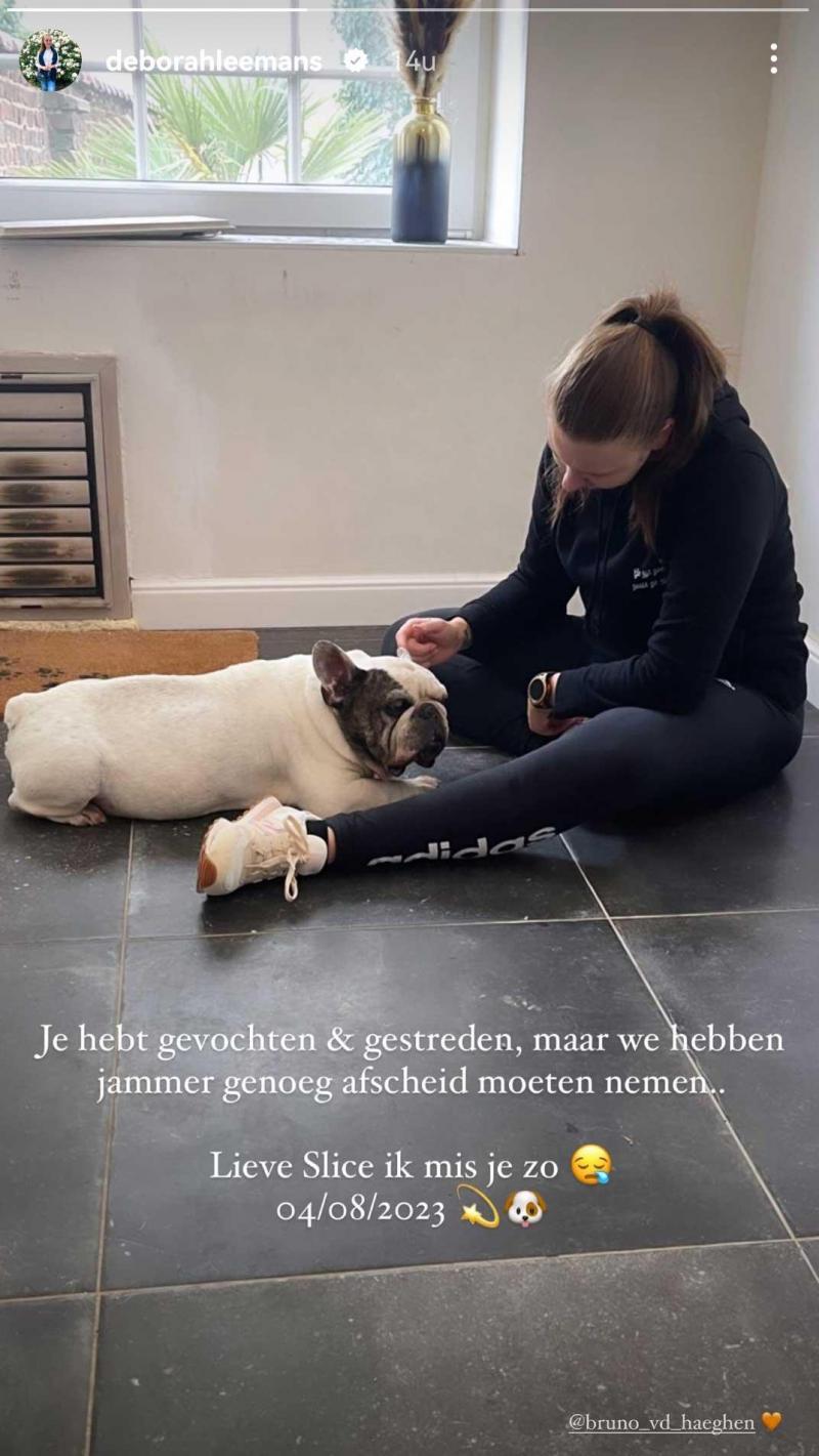 De 30-jarige brunette, die al enkele jaren samen is met ene Bruno, postte een foto van de betreurde Franse buldog met een mooi tekstje erbij. «Je hebt gevochten en gestreden, maar we hebben jammer genoeg afscheid moeten nemen... Lieve Slice, ik mis je zo», klinkt het.
