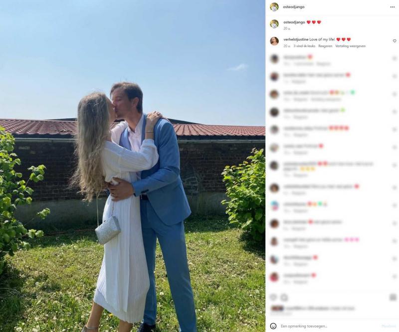 Sinds enkele maanden heeft de 41-jarige osteopaat uit Klerken een relatie met Justine Verhelst, een 24-jarige digitaal ontwikkelaar uit Langemark. Hij deelde op Instagram een kiekje waarop de tortelduifjes al kussend te zien zijn. Hij plaatste er drie hartjes bij, zij maakte met «Liefde van mijn leven» duidelijk dat het menens is.