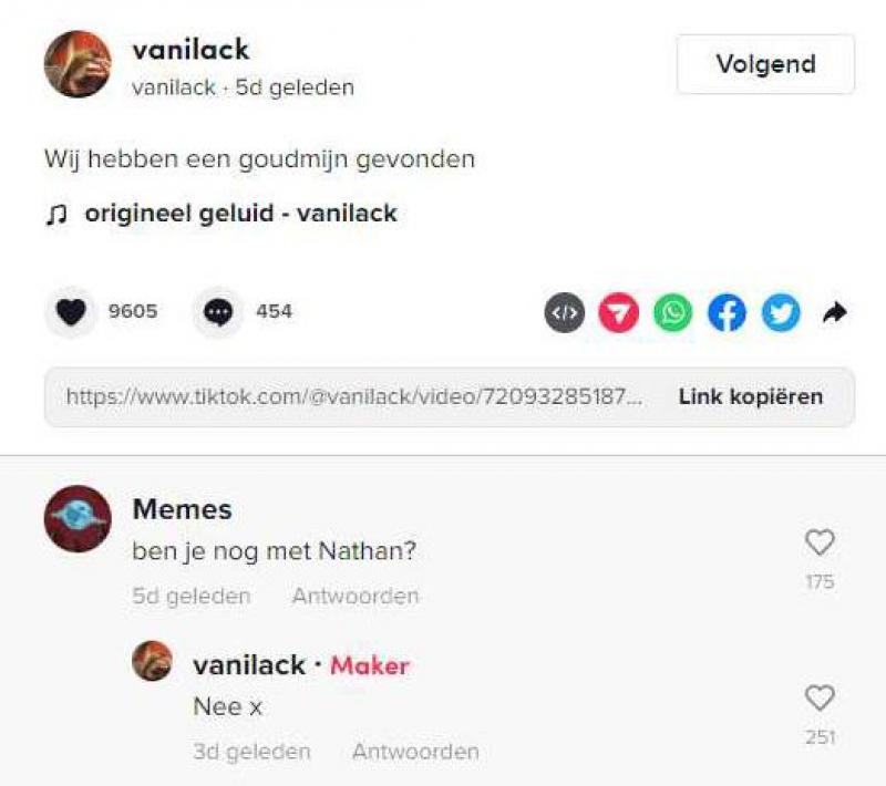 Heeft hét powerkoppel van YouTube en Instagram een punt achter hun relatie gezet? Als we Anna-Livia mogen geloven wel, ja. Een volger vroeg haar op TikTok of ze nog samen is met Nathan. Haar korte (maar krachtige) antwoord: «Nee». Bovendien is er geen spoor meer van foto’s van hun tweetjes op de Instagrampagina van Anna-Livia. Een officieel statement over hun break-up is er echter (nog) niet.