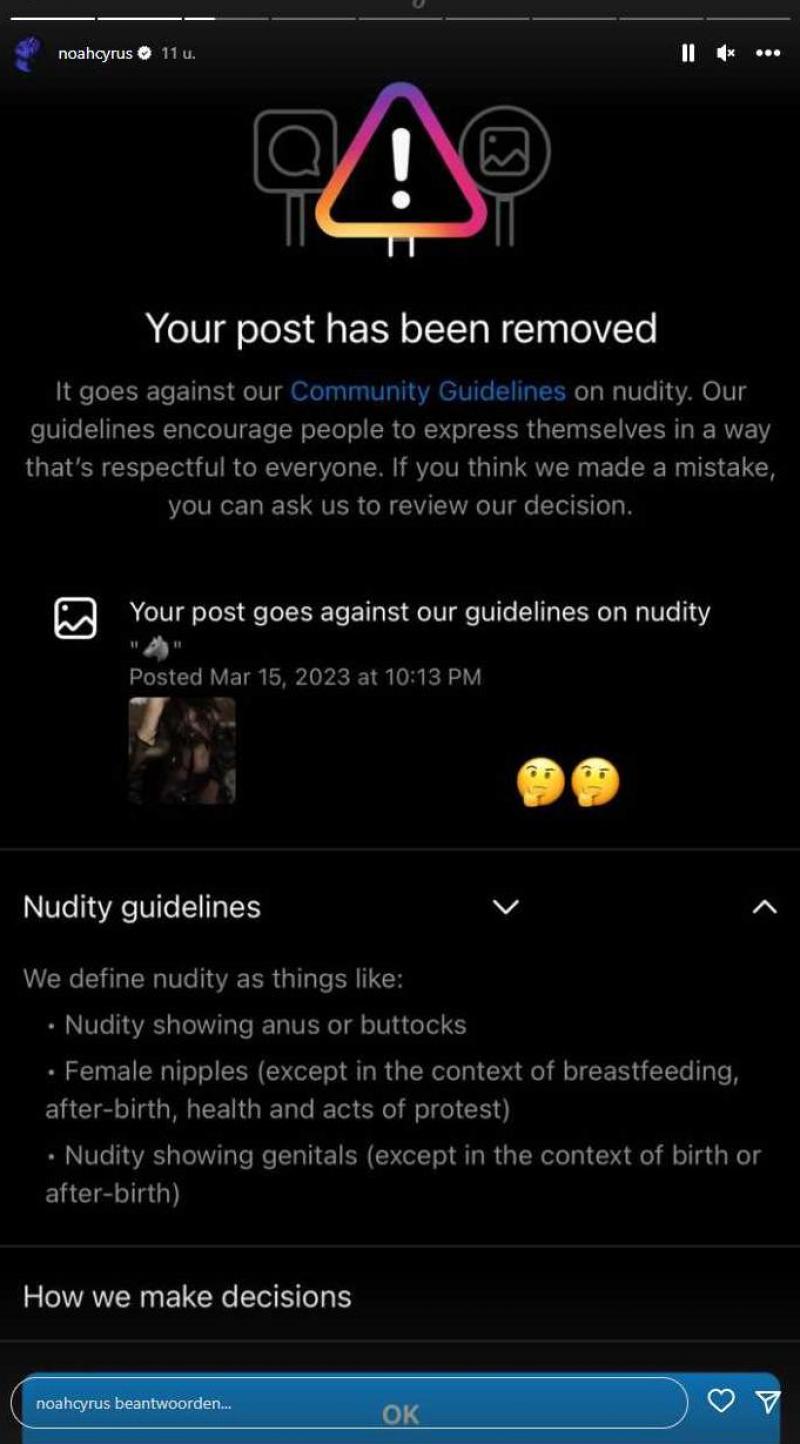 Daar wordt vooral met verstomming gereageerd. Velen vragen zich af hoe het kan dat de - ietwat expliciete - foto’s niet offline gehaald worden. «Dit gaat niet lang online blijven», «Hoe komt het dat dit op Instagram mag en borstvoedingfoto’s niet?», «Kinderen kunnen dit zien... Waarom wordt het niet verwijderd? Ik mag mijn borsten niet tonen, waarom zij dan wel?», «Dan kan je evengoed geen bovenstukje aandoen», en «Je ziet er mooi uit, maar ik vind het ongepast», klinkt het onder meer.