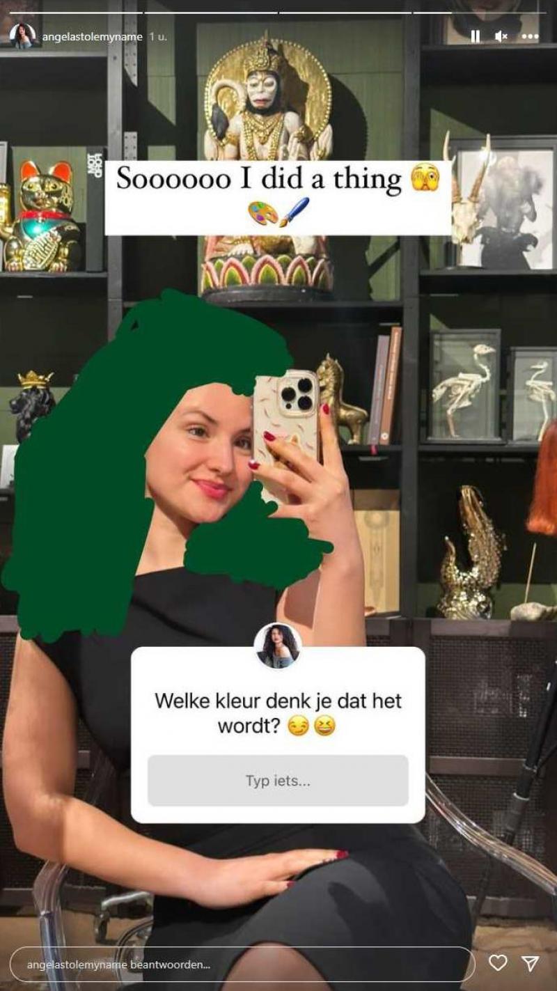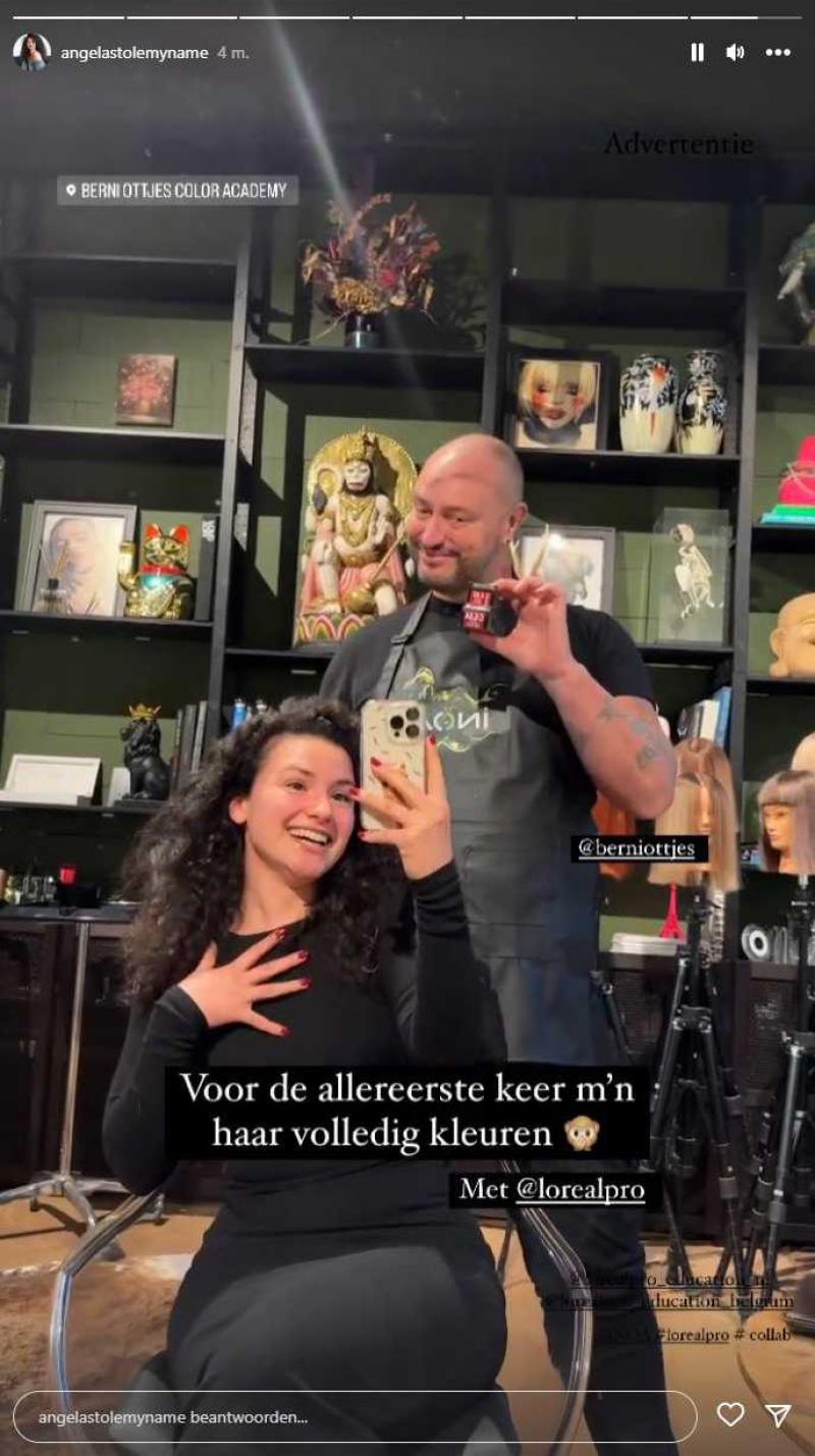 Angela deed in 2020 met (haar intussen ex) Christian mee aan ‘Temptation Island’. Ze had toen bruine krullen, net zoals ze die tot vandaag nog steeds had. De 27-jarige brunette uit Antwerpen deelde gisteren al op Instagram een « laatste foto met bruin haar».