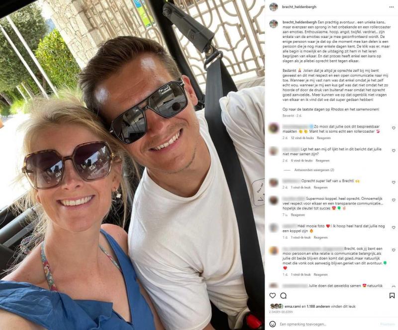 Enkele volgers lezen tussen de regels door dat Brecht lijkt aan te geven dat hun huwelijk niet standgehouden heeft. «Ligt het aan mij of lijkt het in dit bericht dat ze niet meer samen zijn?!», «Inderdaad, raar bericht. Net in de verleden tijd. Wat was geweest maar nu niet meer is», en «Mooi geschreven, maar hopelijk geeft hij het nog een kans... Het lijkt al alsof ze gewoon vrienden zullen blijven. Dat kan, maar zou jammer zijn want liefde forceer je niet maar groeit», wordt er gereageerd.