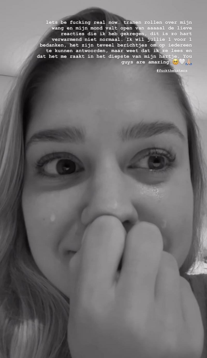 Op sociale media staken veel fans haar een hart onder de riem. De berichten raakten een gevoelige snaar: «Tranen rollen overmijn wang en mijn mond valt open van al die lieve reacties», schreef ze op Instagram.