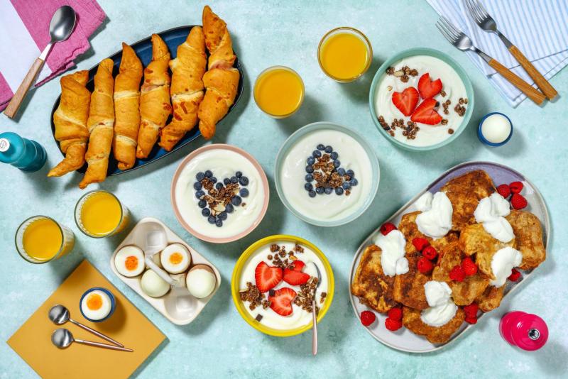 Moederdag komt eraan, maar wat geef je aan een mama die alles al heeft? Wel, steek de handen uit de mouwen en bereid een heerlijke brunch. Met de brunchbox van HelloFresh hoef je niet eens naar de winkel te gaan. Op het menu: wentelteefjes van suikerbrood met mascarpone, yoghurt-bowls met vers fruit, gevulde croissants met ham en kaas, vers sinaasappelsap en een gekookt eitje. Smakelijk!