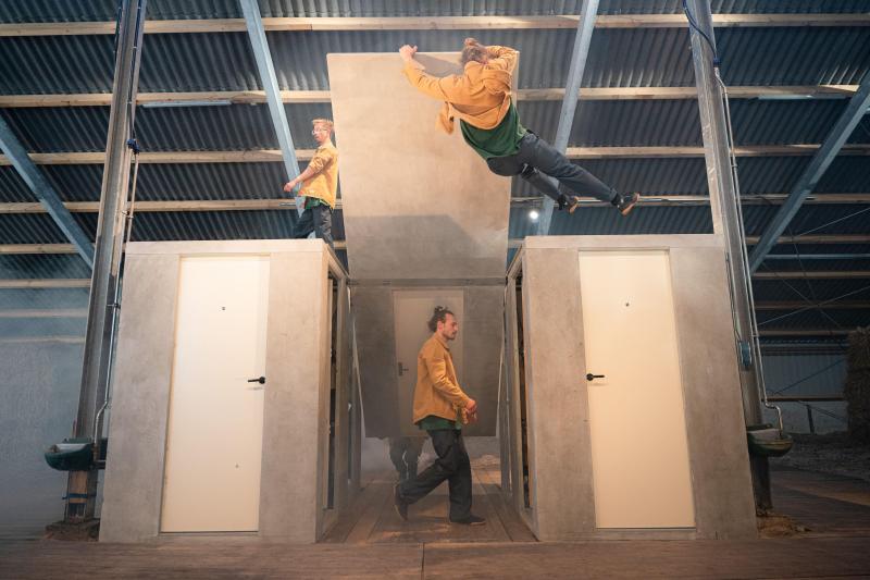 Eeklo - In een grote, indrukwekkende installatie met een draaiende muur en zwevende deuren bewegen vier individuen door de ruimte. Ze lopen, botsen, klimmen, balanceren en transformeren. Zijn ze onafhankelijk van elkaar, of hebben ze elkaar juist heel hard nodig? EXIT is een spannende circusvoorstelling waarbinnen beweging, partneracrobatie en evenwicht samenvloeien. Een adembenemend straffe voorstelling, geselecteerd voor het Theaterfestival van dit jaar. Deze zaterdag komt de voorstelling naar Eeklo, en neem vooral je kroost mee, want EXIT is geschikt voor kinderen vanaf 8 jaar.